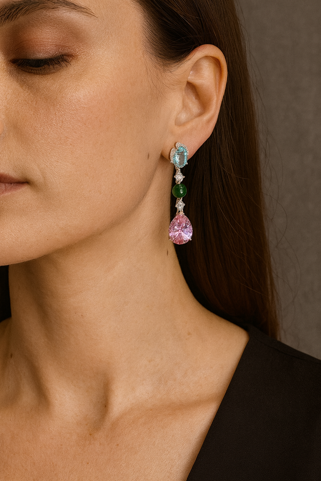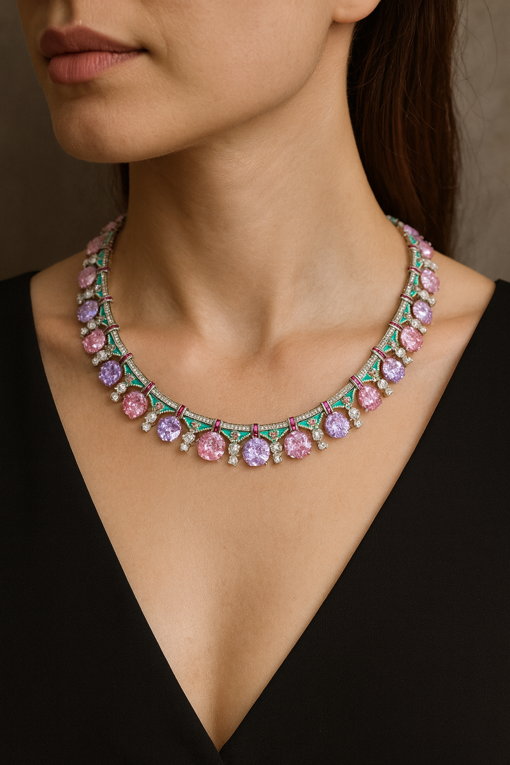 featuring high-quality large gemstones in dreamy pastel tones of pink, lilac, and emerald — radiating elegance and timeless feminine charm.